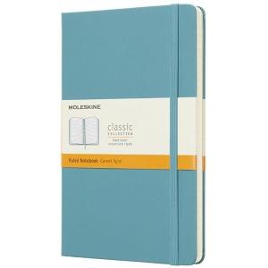Taccuino Classic con copertina rigida colorata; Angoli arrotondati; Chiusura elastica; Carta color avorio Moleskine; Segnalibro dello stesso colore; Carta: 70 g/m2, acid-free, avorio, a righeEtichetta "in case of loss" stampata nel risguardo; Tasca interna espandibile sulla parte posteriore; Sul B-SIDE della fascetta riutilizzabile sono stampati strumenti aggiuntivi; Apertura totale a 180°; All’interno tutta la storia Moleskine.