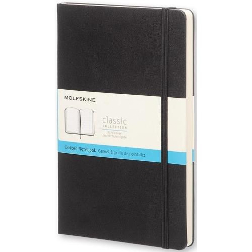 Taccuino Classic con copertina rigida nera · Angoli arrotondati · Chiusura elastica · Carta color avorio Moleskine · Segnalibro dello stesso colore · Carta: 70 g/m2, acid-free, avorio, puntinata · Etichetta \in case of loss\"" stampata nel risguardo · Tasca interna espandibile sulla parte posteriore · Sul B-SIDE della fascetta riutilizzabile sono stampati strumenti aggiuntivi · Apertura totale a 180 gradi · All'interno, tutta la storia Moleskine