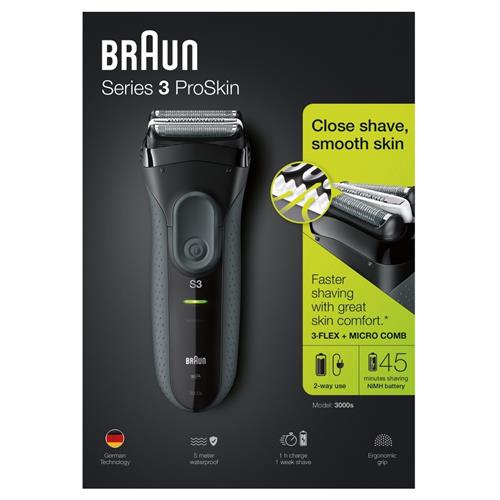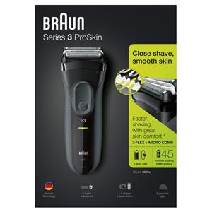 "Il rasoio elettrico ricaricabile a lamina Braun Series 3 ProSkin 3000s offre una rasatura efficace in una sola passata