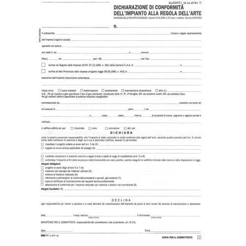 Dichiarazione conformità dell'Impianto alla regola dell'Arte