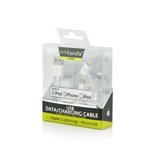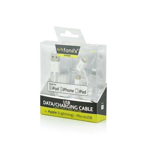CAVO DATI USB - MICRO USB CON ADATTATORE LIGHTNING COMPATIBILE CON TUTTI I DISPOSITIVI APPLE DI 2A GENERAZIONE, CON QUALITÀ E COMPATIBILITÀ CERTIFICATA APPLE MFI. UTILIZZABILE PER UNA RICARICA VELOCE ED EFFICACE O PER SCAMBIO DATI CON TUTTI GLI ALTRI DISPOSITIVI DOTATI DI PORTA USB. LUNGHEZZA 1 MT.